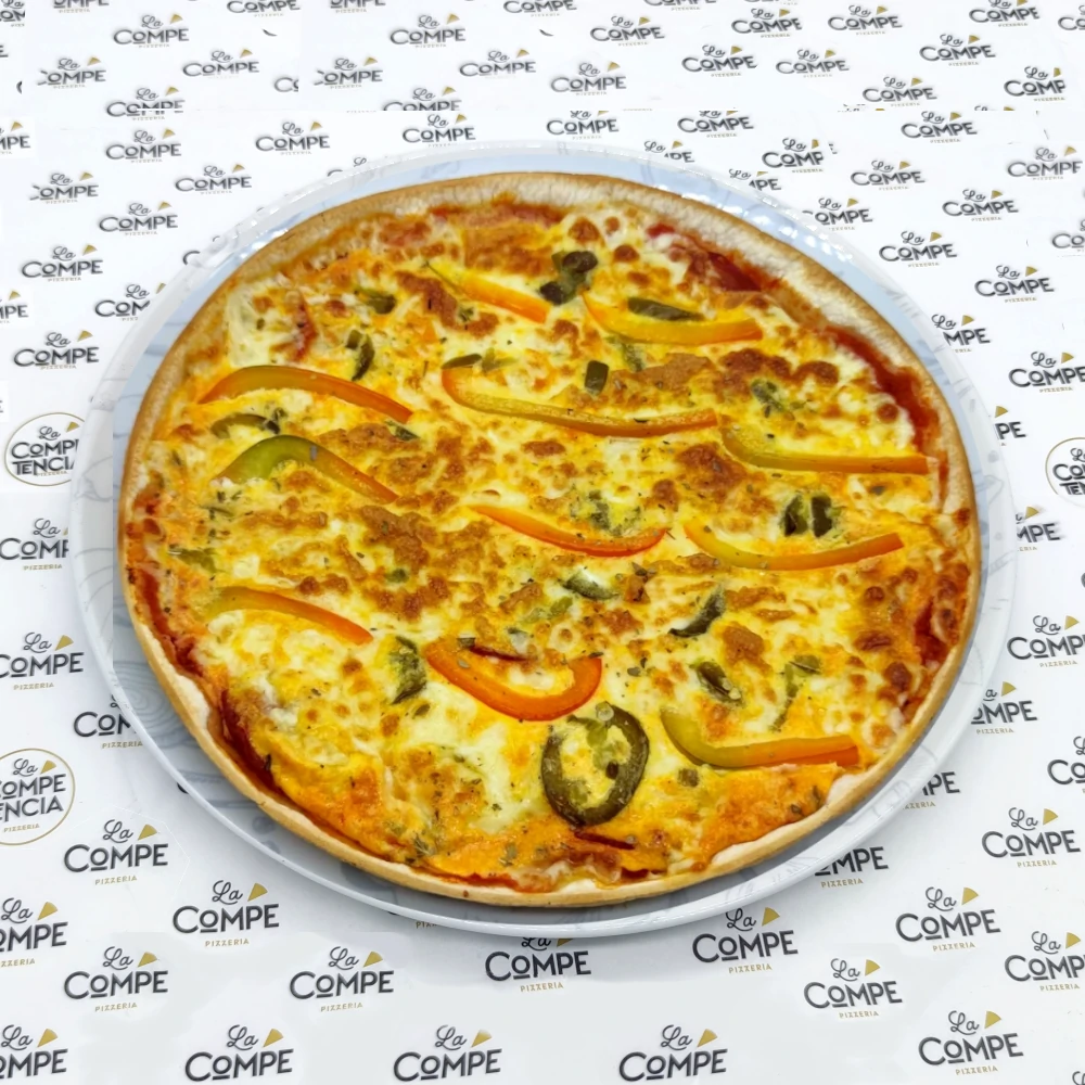 Tomate, mozzarella, chorizo, chiles, huevo batido, pimientos y orégano.